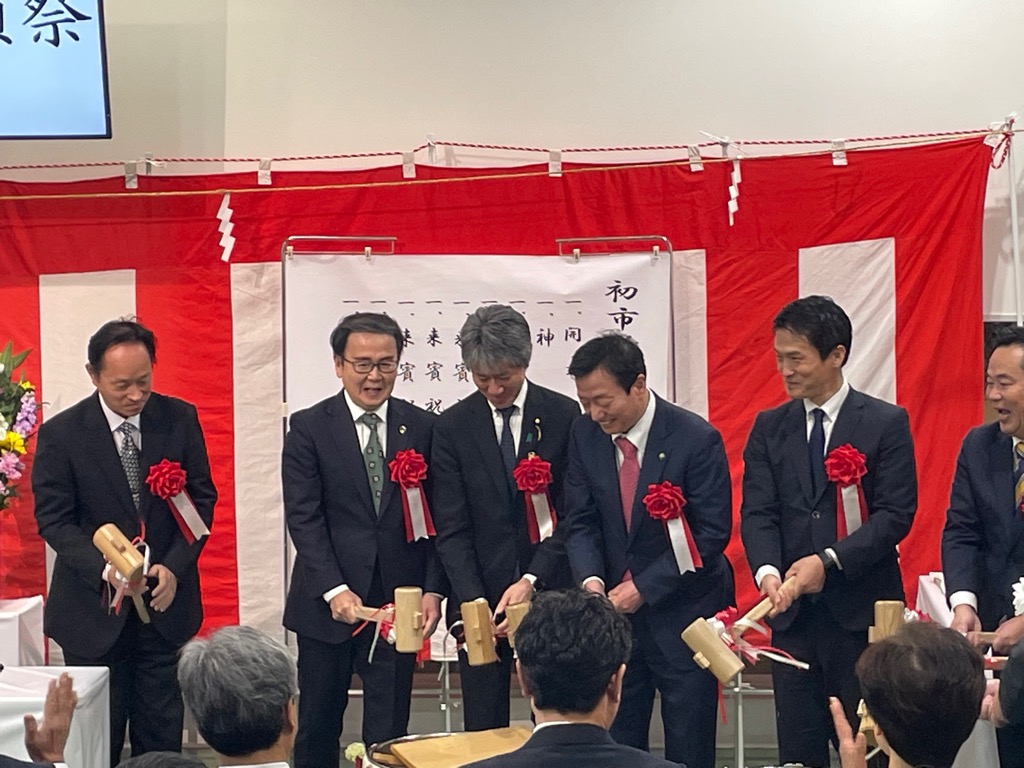 1月5日、高松市場にて初市が行われました。午前6時30分より青果棟展望デッキにて初市祈願祭を開催し、市場関係者をはじめ多くのご来賓など約40名の方々にご参列いただき、神事や鏡開きが執り行われました。